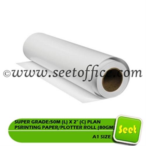 SUPER GRADE A1 SIZE:50M (L) X 2" (C) PLAN PRINTING PAPER/PLOTTER ROLL (80GM), 4ROLL/BX quantity